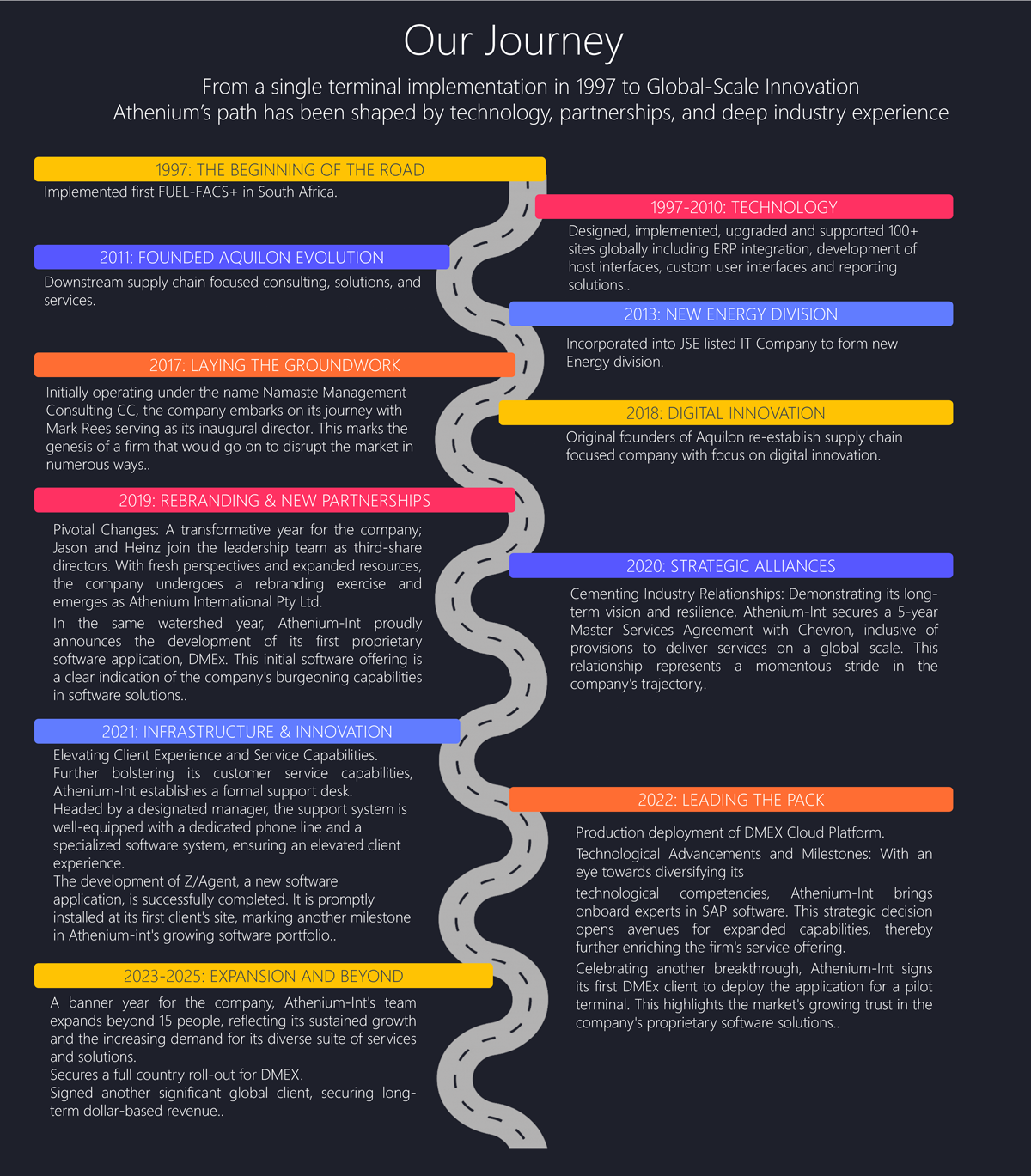 Athenium International is a global consulting and technology services firm specializing in fuel terminal automation and enterprise integration. What sets us apart is our people—each team member brings real-world oil & gas expertise, from field instrumentation to SAP configuration, from business process design to hands-on troubleshooting.
