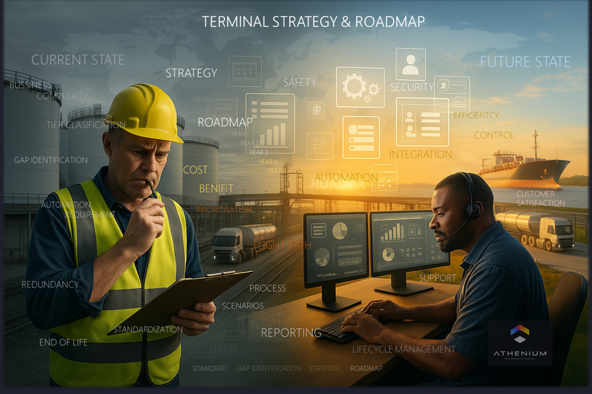 Athenium International brings structure and clarity to even the most complex terminal environments. Our Terminal AI framework delivers a standardized, scalable approach to assess, plan, and modernize infrastructure across portfolios—from 1 to 200+ facilities. Backed by deep oil & gas domain expertise, engineering capability, and integration know-how, we create actionable, data-backed roadmaps that drive measurable transformation. With a sharp focus on automation maturity, compliance alignment, and enterprise integration, we help clients build scalable, achievable 5–10-year transformation strategies.